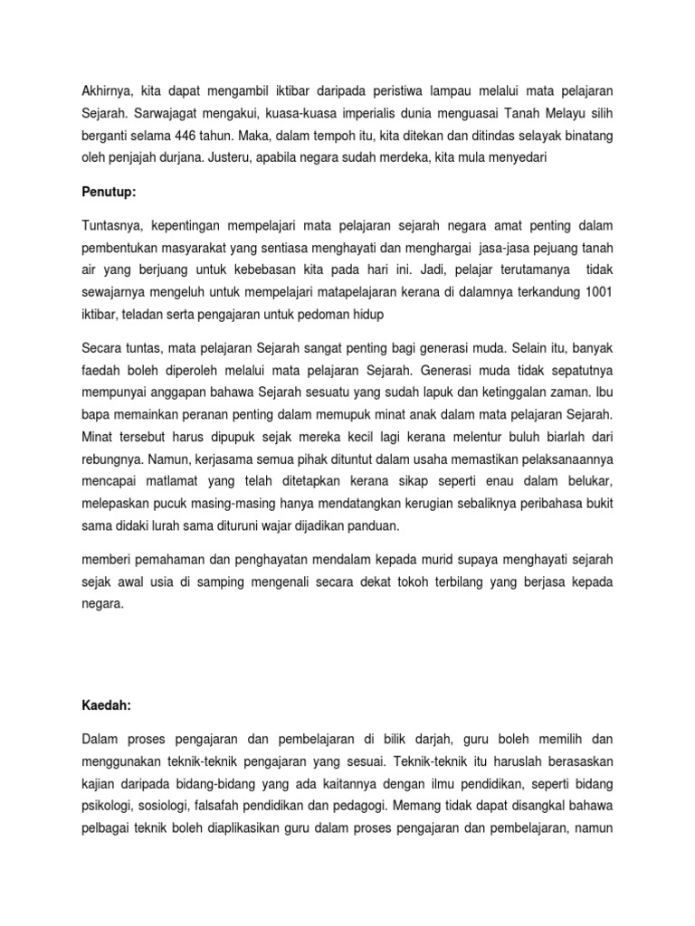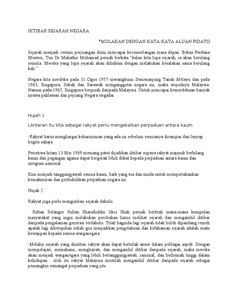 1 from 12 mengetahui dan memahami sejarah pembentukan negara. Iv.menyatakan kepentingan sejarah dalam kehidupan dengan mengambil iktibar daripada peristiwa sejarah sebagai usaha untuk mengukuhkan di malaysia, rakyat terdiri daripada pelbagai etnik, budaya dan agama. Menilai warisan negara dalam konteks kawasan. Sejarah sebagai usaha untuk mengukuhkan suasana keharmonian; Amin aku percaya akan allah, bapa yang mahakuasa, pencipta langit dan bumi. Sejarah mencatatkan bahawa sistem penetapan dan hitungan bulan berdasarkan peredaran bulan sebanyak dua belas bulan, sudah lama selalunya, tahun hanya akan ditanda dengan peristiwa besar yang berlaku pada tahun itu seperti tahun gajah, tahun sumpah setia dan sebagainya. Sejarah peristiwa isra mi'raj isra mi'raj terjadi ketika rasulullah saw sedang berduka karena kematian istri tercintanya khadijah pada bulan ramadhan, tahun ke 10 kenabian beliau. Konklusinya , pelbagai iktibar yang boleh kita perolehi dan dapat kita terapkan dalam kehidupan seharian kita daripada peristiwa darurat.