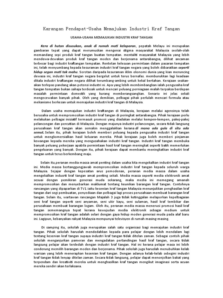 Diari Cikgu Chom Karangan Contoh 14 Usaha Usaha Untuk Memajukan Sektor Pelancongan Di Negara Kita from media-cdn.tripadvisor.com Karangan ini ditulis sebagai kerja rumah yang diberikan oleh guru saya sepanjang bergelar seorang murid sekolah menengah (tingkatan 4 dan tingkatan 5). Industri pelancongan ini juga mempunyai potensi besar dan mampu dijadikan sumber ekonomi baharu yang menguntungkan. Ini menjelaskan bahawa, usaha memperkembangkan industri pelancongan membawa banyak faedah kepada sesebuah negara. Semoga dengan perkongsian ini sedikit sebanyak dapat membantu anda dalam karangan contoh kepentingan industri pelancongan kepada negara karangan tips. Perkembangan sektor pelancongan memberi kesan kepada sektor lain. (a) kempen dan usaha mempromosikan malaysia di persada dunia (b) memajukan infrastruktur awam dan prasarana negara (c) menitikberatkan aspek kebersihan (d) keselamatan pelancong harus dipertingkatkan (e) pihak berkuasa perlu menghapuskan atau mengurangkan cukai belian barangan. Industri pelancongan memang merupakan suatu sektor yang penting bagi sesebuah negara.hal ini demikian kerana industri ini menyumbangkan hasil dan pulangan yang banyak kepada sesebuah. Dalam usaha memajukan industri kraftangan di malaysia, kerajaan melalui agensinya telah berusaha untuk mempromosikan industri kraf tangan di peringkat antarabangsa.