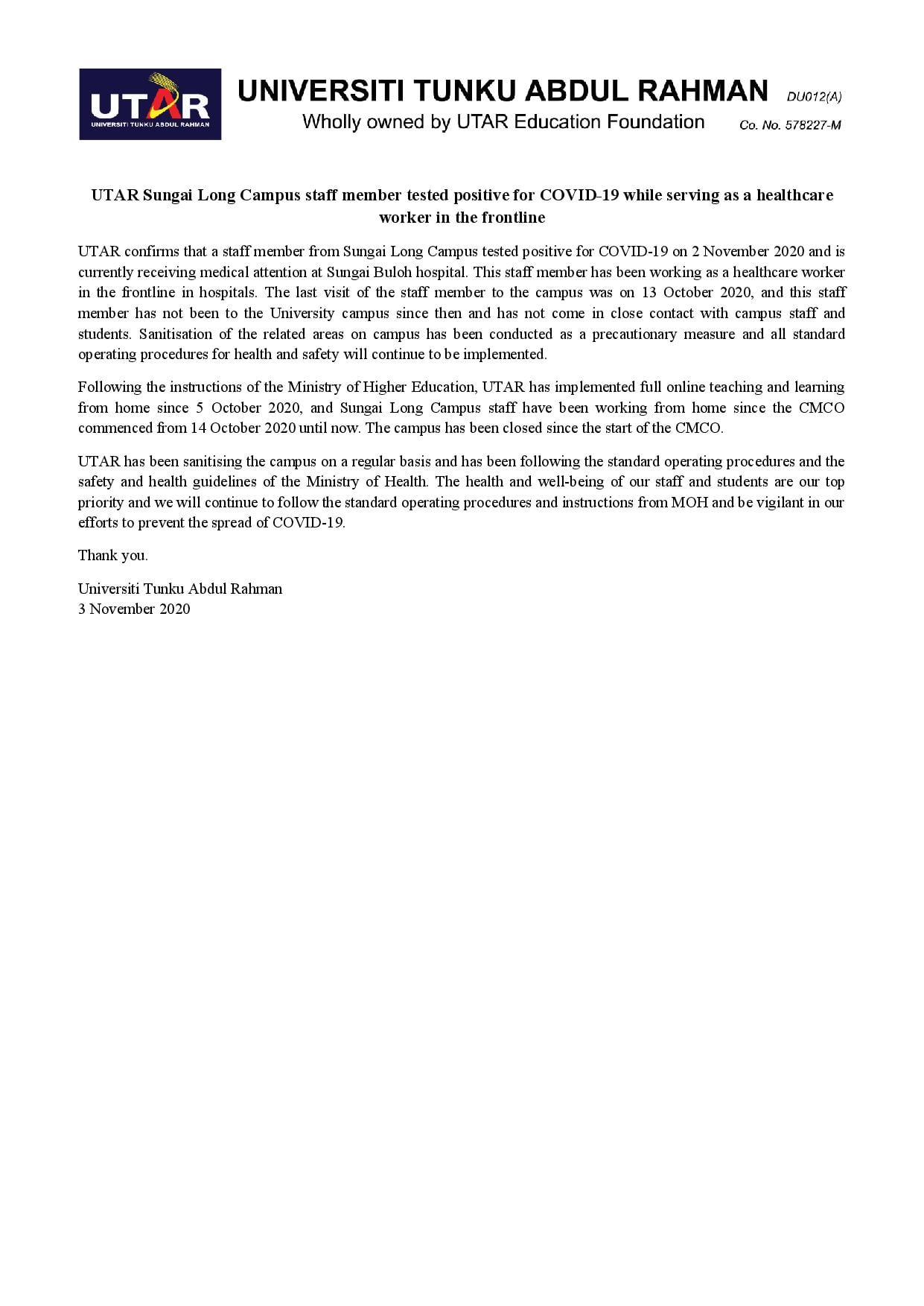 Faculté des sciences et technologies de l'éducationuniversity, senegal. Our core function is to preserve student's right, welfare and privileges. With this move, utar now owns and operates both its campuses in kampar and sungai long. Universiti tunku abdul rahman, 1st floor, kb block, bandar sungai long, cheras, 43000 kajang selangor., kajang, 43000, malaysia. Tokyo walker local business 43000 cheras, kuala lumpur.