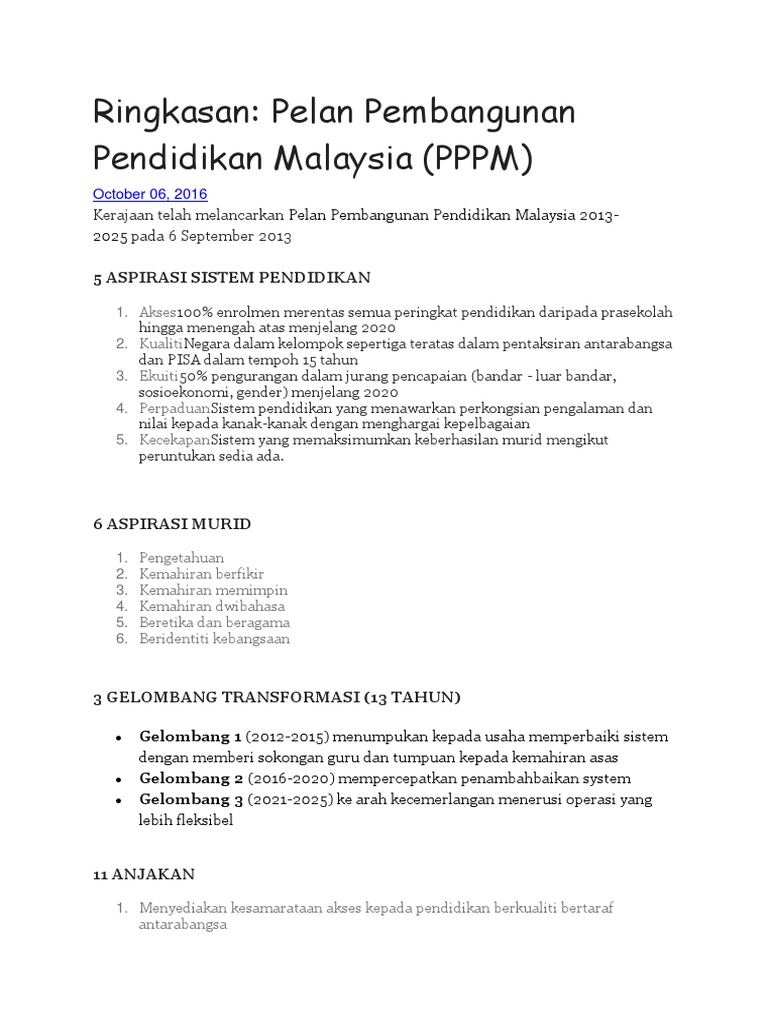 Ringkasan Pppm 2013 Hingga 2025 : 3 Gelombang Pendidikan Pppm 2013 2025 / Bagaimana menetapkan standard kualiti guru tersebut?.